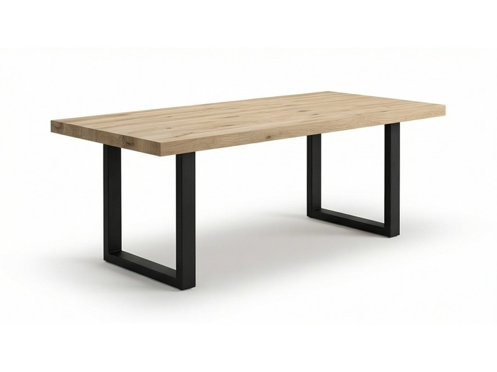 Masivní jídelní stůl z masivu s ocelovou podnoží