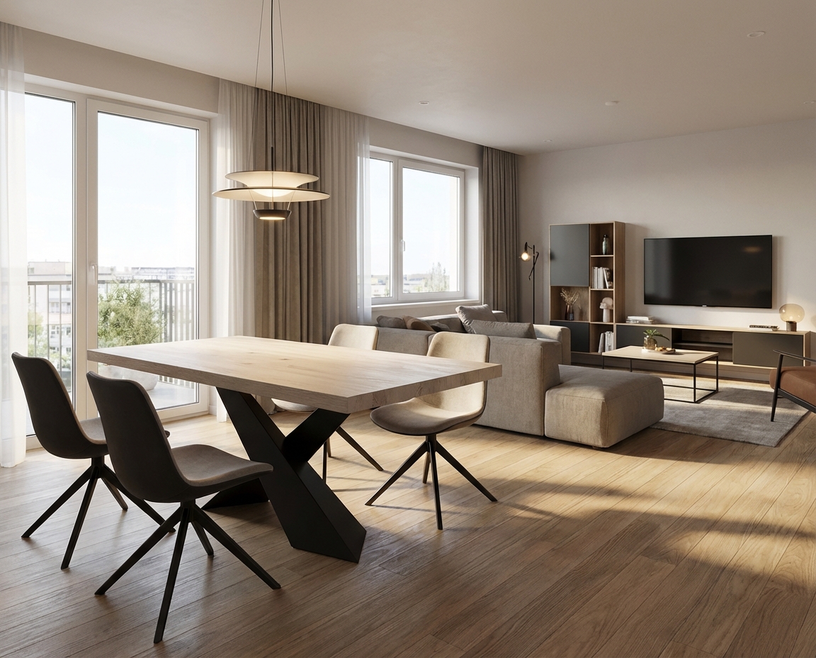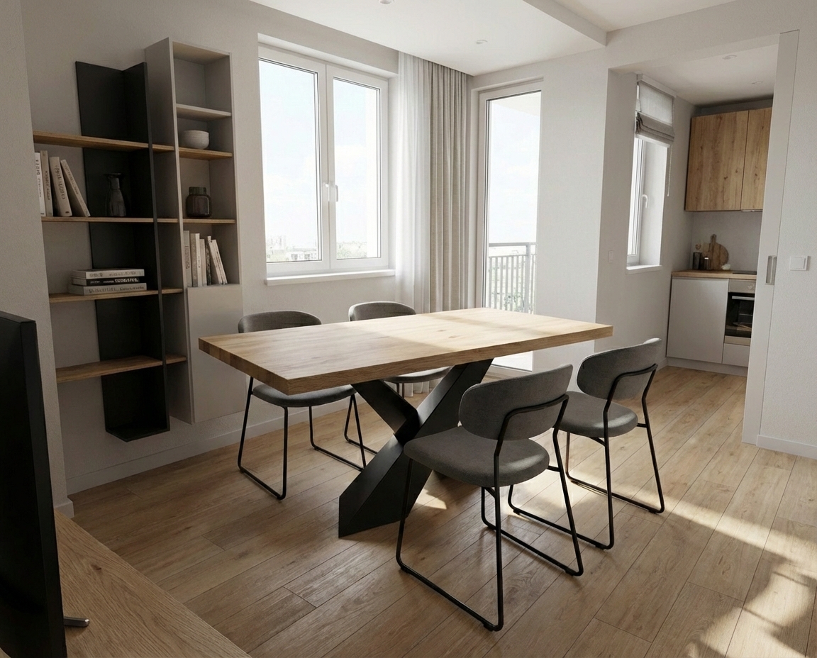 Cílem není jen pěkný obrázek, ale rozhodovací podklad. Díky vizualizaci hned uvidíte, jestli stůl prostor nepřetíží nebo naopak „nezmizí“.